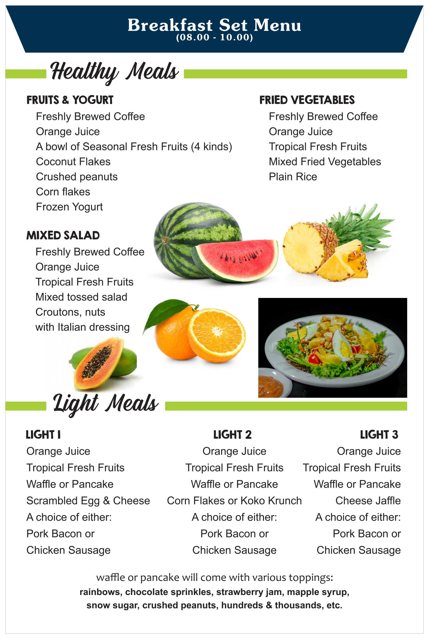 Breakfast is available from 8 am until 10 am at the restaurant on 4th floor. Kindly help us by ordering 1-day ahead. Thanks.